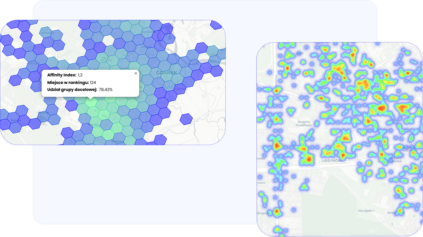 Umożliwiamy podejmowanie decyzji w oparciu o dane dotyczące rzeczywistego natężenia ruchu w danej lokalizacji, identyfikację whitespotów oraz analizę nasycenia rynku, co radykalnie minimalizuje ryzyko inwestycyjne.