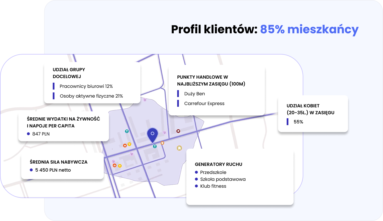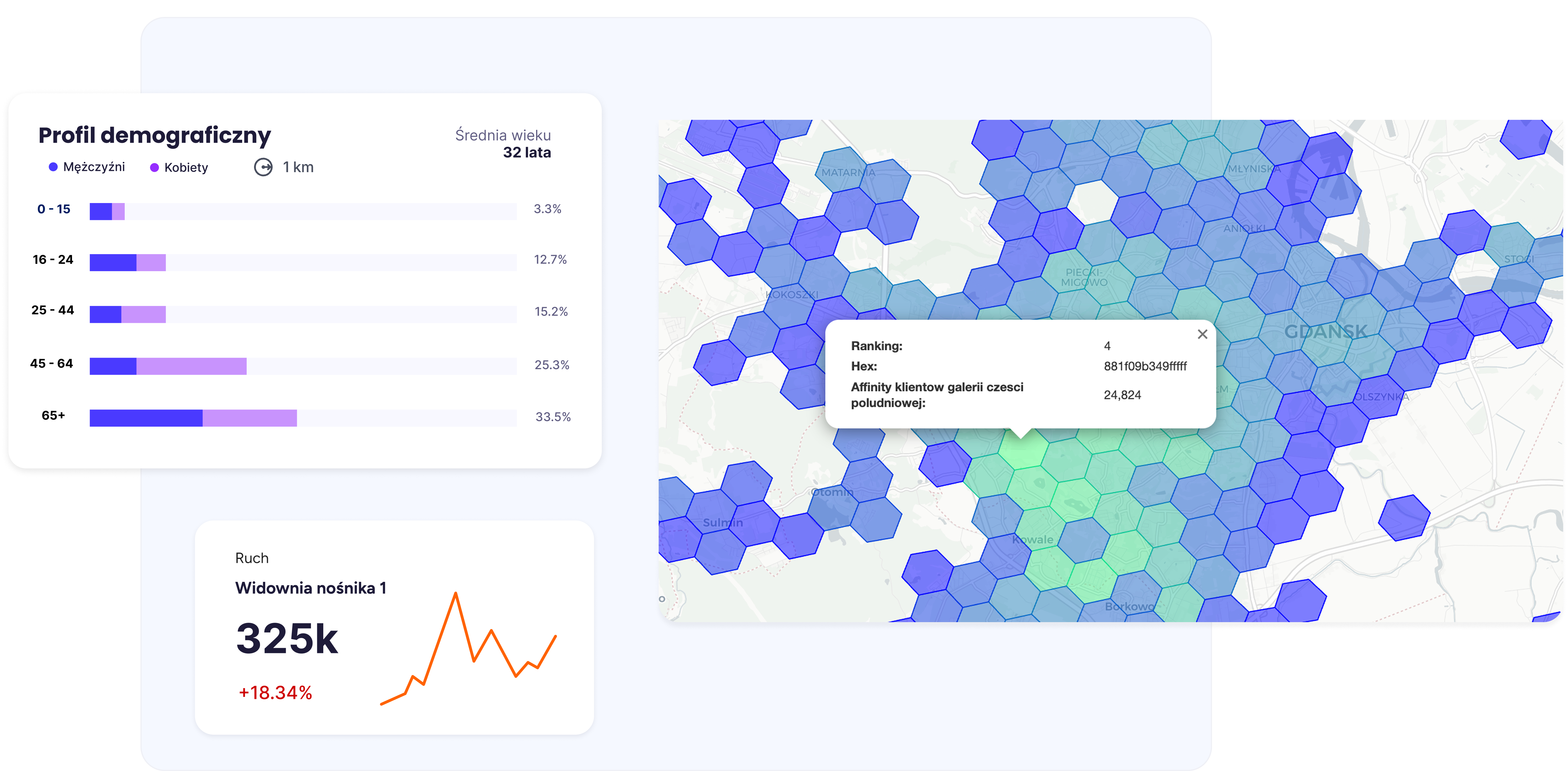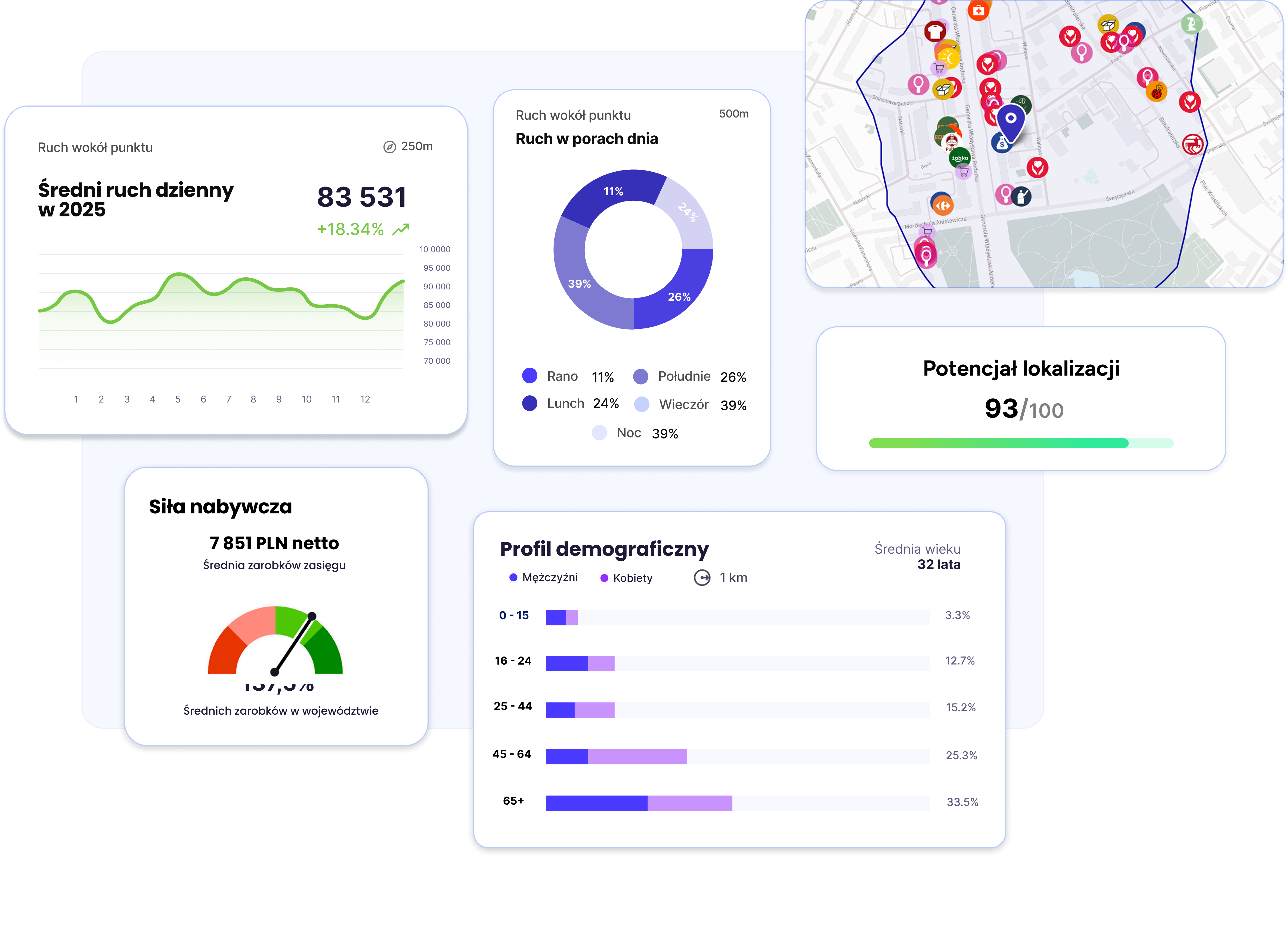 Zrozum pełen kontekst danej lokalizacji – od struktury demograficznej oraz dynamikę ruchu po potencjał zakupowy