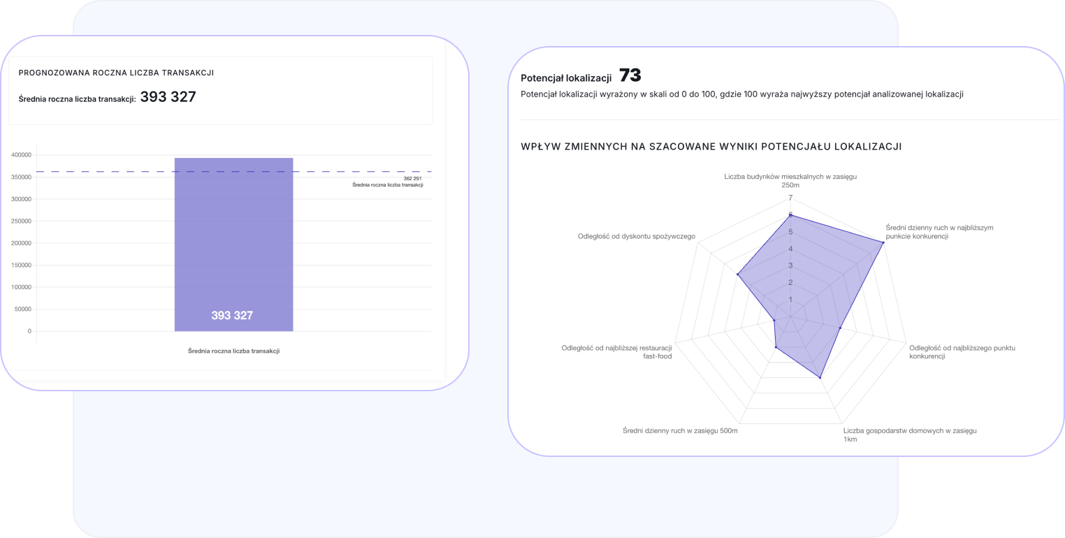 Nasze 3 modele predykcyjne, dopasowane do potrzeb twojego biznesu umożliwią ci wnikliwą ocenę potencjału sprzedażowego każdej lokalizacji.